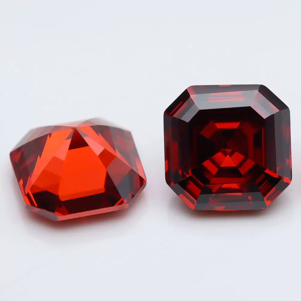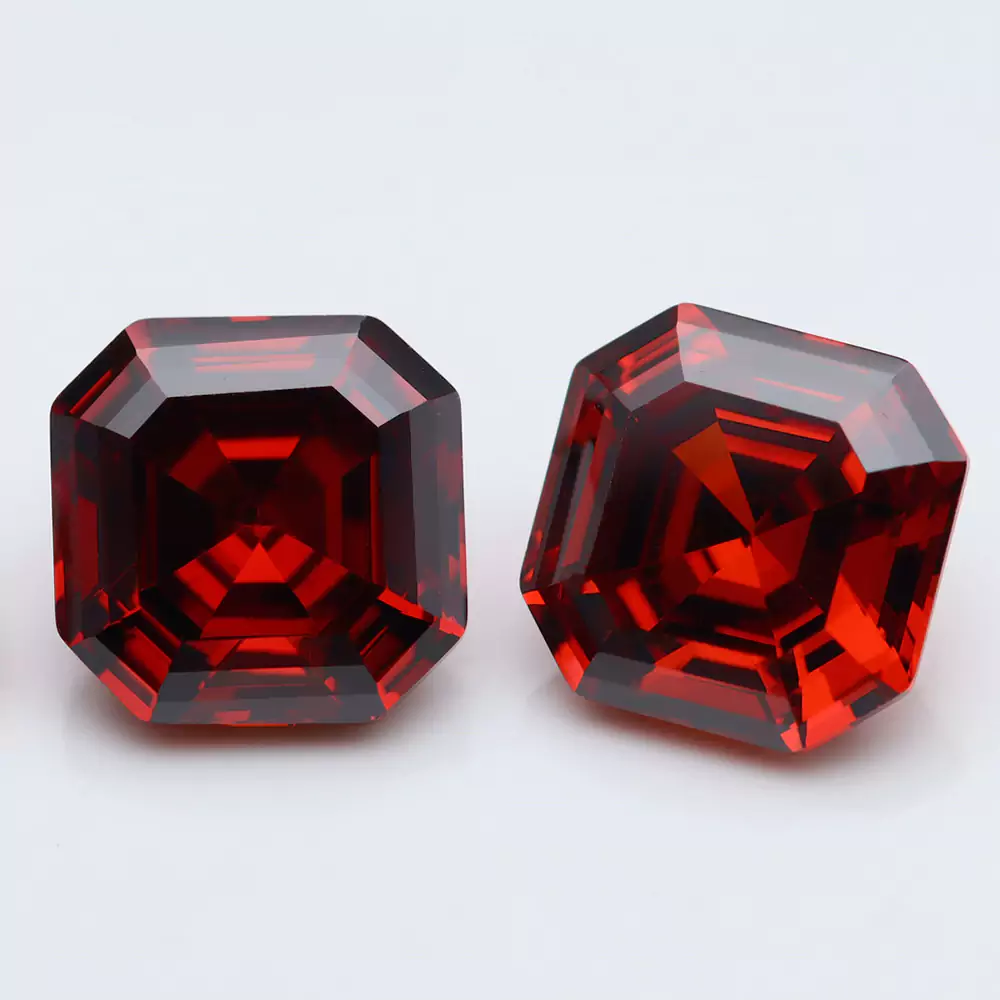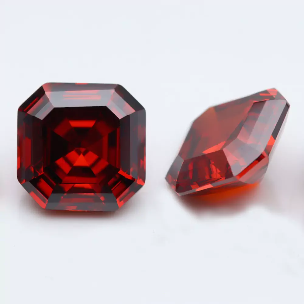 The Finest Quality Premium Asscher Cut Garnet Color Cubic Zirconia Loose Stones 8x8mm Factory Wholesale Price Made in China Manufacturer